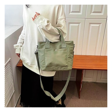 Allsidige bærealternativer: Denne vesken har en avtakbar og justerbar skulderstropp, slik at du kan bære den som en veske, skulderveske eller crossbody-veske. Bytt enkelt mellom stiler for å passe dine behov og preferanser.