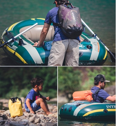 Vanntett design: Laget av slitesterkt PVC-nettingsstoff, sikrer denne ryggsekken at eiendelene dine holder seg tørre selv under våte forhold, noe som gjør den ideell for utendørsaktiviteter som fotturer, camping og strandutflukter.