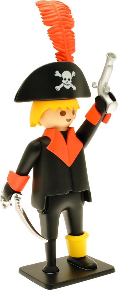 Samlere av vintagefigurer vil sette pris på Collectoys Playmobil figur! Denne 9-tommers polyresinfiguren har en pirat som holder et sverd og en pistol og har på seg en sjørøverhatt med fjær og hodeskalle.Les mer om produktet