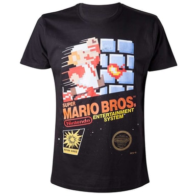 Sort T-skjorte med Nintendo Entertainment System - Super Mario Bros-motiv. 100% bomull, størrelse XL, som tilsvarer størrelse EUR 54.