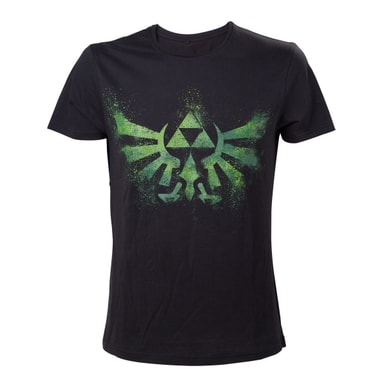 Sort T-skjorte med The Legend of Zelda Triforce-logo i grønt. 100% bomull, størrelse XS, som tilsvarer størrelse EUR 46.Les mer om produktet