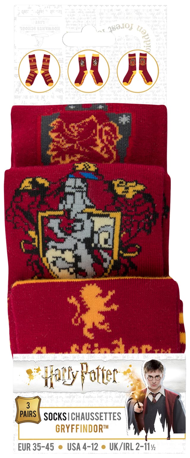 Vis hvilket hus du tilhører med Galtvort sett med 3 par sokker. De tre parene med sokker i størrelse 35-45 har farger og emblem fra Griffing-huset.