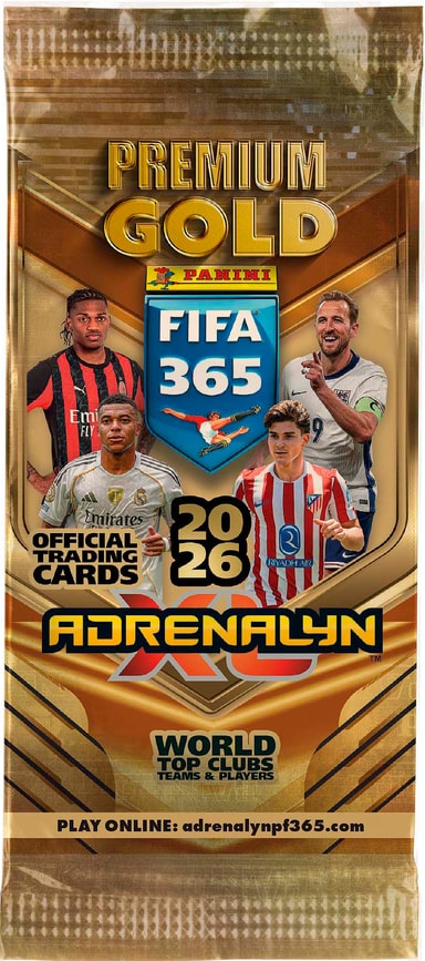 Panini FIFA 365 Adrenalyn XL 2026 Premium Gold samlekort inneholder 1 Premium-pakke, 3 eksklusive premium Gold Limited Edition-kort fra et sett med 6, og 1 Limited Edition Online Coin Card.Les mer om produktet