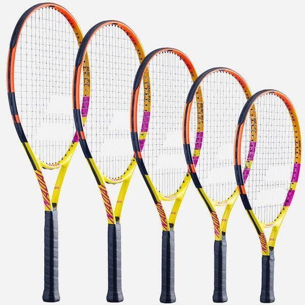 Spela med ett racket som bär en mästares namn. Nadal Junior-racken ger dig chansen att vinna varje boll och ha roligt ute på banan. Finns i flera olika storlekar samt färger så att spelare kan välja en modell anpassad efter sin längd och ålder. Levereras färdigsträngat med ett skyddande fodral. 19” passar spelare som är upp till 90-105 cm långa. 21’’ passar spelare som är upp till 105-120 cm långa. 23’’ passar spelare som är upp till 120-130 cm långa. 25’’ passar spelare som är upp till 130-140 cm långa. 26"" passar spelare som är upp till 140-150 cm långa. Specifikationer Material: Aluminium Vikt: 174 g (19”) Vikt: 177 g (21”) Vikt: 215 g (23”) Vikt: 240 g (25”) Vikt: 245 g (26”)