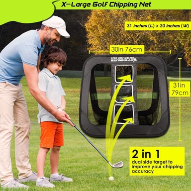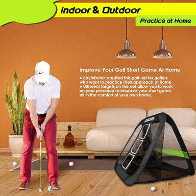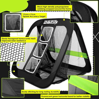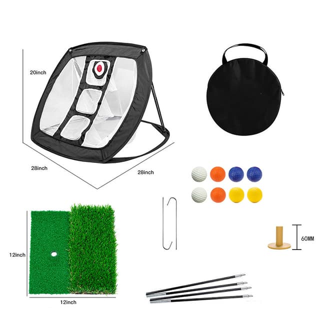 Allsidige treningsalternativer: Dette golfnettet tilbyr forskjellige treningsmoduser for å forbedre chippingnøyaktigheten og teknikken din. Måldesignen hjelper deg med å fokusere på siktet ditt, mens det romslige nettet sikrer at alle skudd fanges trygt.
