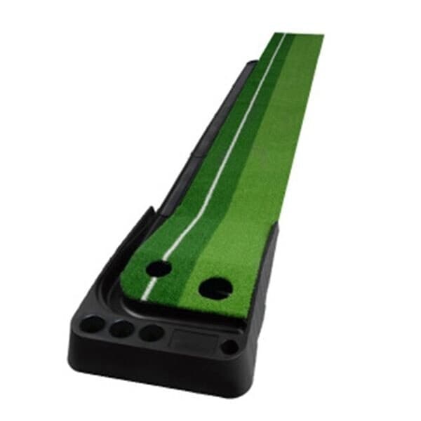 Denne innendørs golfbanen er ideell for deg som vil forbedre puttferdighetene dine hjemme. Med en lengde på 3 meter og en bredde på 30 cm gir den realistiske forhold for å øve på presisjon og kontroll. Banen er laget av slitesterkt kunstgress som gir en følelse som ligner på en ekte golfbane. Den innebygde golfballbeholderen gjør det enda mer praktisk og gjør det enkelt å fortsette å øve uten avbrudd. Vær oppmerksom på at golfkøller og baller ikke er inkludert, men banen er kompatibel med standardutstyr.