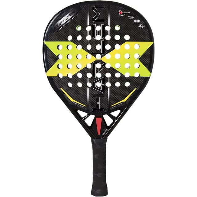 Euphoria 3K är en av modellerna i det nya Harlem Padel-sortimentet. Harlem Padel är ett spanskt, exklusivt varumärke. Detta padelracket har en brygga som är lokaliserad över handtaget. Denna brygga gör padelracket extremt stabil och solid vilket bidrar till en härlig träffkänsla och genererar grym kraft. Detta padelracket är droppformat och har en medelbalans vilket ger en stor sweetspot och en bra kombination av fart och kontroll. Träffytan på Euphoria 3K är tillverkad i kolfibermaterial med 3K, detta innebär att ytskikten består av ett kolfiber med 3000 kolfibertrådar per cm². Detta gör träffytan stabil och solid utan att kännas för styv. Harlem har ett avtal med antivibrationssystemet ShockOut. Dessa dämpare går att köpas separat till racket och medföljer inte som standard. Dämparna reducerar vibrationerna med upp till 60% vilket stöds av Higher Technical School of Industrial Engineers of the Polytechnic University of Madrid. Dessa bidrar även till en mjukare, mer skonsam träffkänsla och passar utmärkt till dig som söker ett racket som inte påverkar din arm eller armbåge negativt. Kärnan är gjord av laminerat EVA Soft High Recovery som ger en mjuk touch med hög återhämtningsförmåga, vilket minimerar vibrationer på ett mycket effektivt sätt. Specifikationer Form: Dropp Balans: Medel Vikt: 355-370 Gram