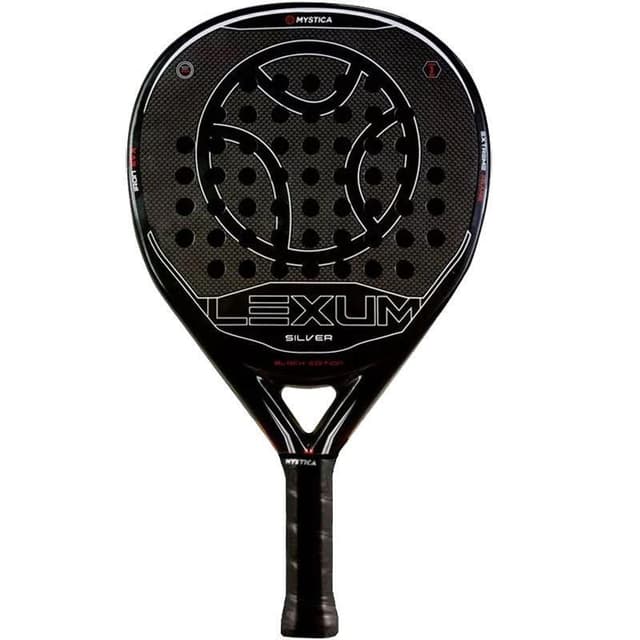 Vi välkomnar Mystica in i vårt sortiment - ett galet intressant varumärke från Spanien. Här har vi Mystica Lexum Silver Black Edition 2021, ett racket för den ambitiösa motionären som söker ett välbalanserat racket som erbjuder både kraft och kontroll. Formen är av en överdimensionerad droppform och har en medelbalans. Detta innebär att du får en stor sweetspot samtidigt som du får en adderad tyngd i de offensiva tillslagen. Träffytan består av det påkostade materialet Carbon 3 Max och ramen är även den såklart konstruerad med 100% kolfiber. Specifikationer Form: Dropp Balans: Medel Vikt: 360-375 Gram