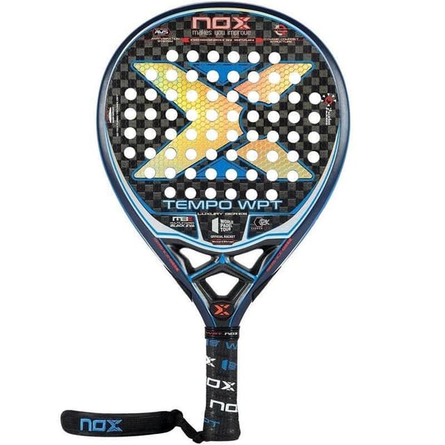 Nox Tempo WPT Luxury 2021 är uppföljaren till den otroligt populära föregångaren med samma namn. Skillnaden mellan dessa modeller är att kärnan i årets modell är något styvare, Multilayered Core Black som är en multidimensional kärna som förändrar sig beroende på typen av slag du gör. Du får mer kontroll i det lugna spelet och mer fart i det offensiva. Tempo WPT Luxury 2022 är droppformad vilket ger spelaren en jämn fördelning av kontroll och fart. Racket använder sig av kolfibermaterialet Carbon Alum 12K som ger spelaren grym respons och kvalité. Detta är ett allround racket som passar de flesta typer av spelare som vill ha ett riktigt lyxigt och kvalitativt racket. En nyhet som medföljer till detta racket är det nya Smartstrap som är ett system som revolutionerar handledssnöret genom att göra det utbytbart - detta för att öka valmöjligheterna och möjligheten att anpassa sitt racket på en personlig nivå alltmer. Någonting som är unikt med Nox som skiljer dem mot många andra märken är att stjärnorna, i det här fallet Lamperti spelar med exakt samma racket, omodifierat på World Padel Tour. Levereras med racketpåse. Specifikationer Vikt: 360-375 Gram Ramprofil: 38 mm Form: Dropp Balans: Medel