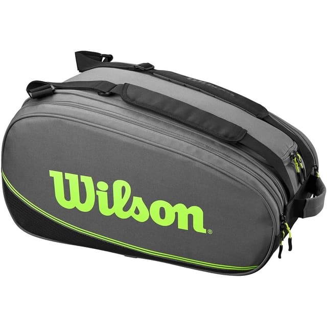 Tour Blade Padel Bag er den perfekte padelbagen, oppsummert med noen få ord. Denne romslige vesken har plass til alt du trenger å ta med deg til padelhallen og mer, fra to hovedrom som rommer opptil seks stativer, til en innerlomme spesialdesignet for en bærbar PC eller nettbrett, til en tilbehørslomme. som er perfekt for mindre personlige gjenstander. Padellstativene er beskyttet mot raske temperaturforskjeller takket være termobeskyttelsesforingen som beskytter i et av hovedrommene. Denne vesken er også designet for å holde spillerne organisert, med et avtagbart internt skillesystem som skiller rene og skitne klær. Spesialdesignet med Blade-padellracketen i tankene, vil denne vesken heve din selvtillit i padelspillet ditt til et nytt nivå. Tour Blade Padel Bag er ikke bare en praktisk veske, men også et stilig og elegant tilbehør for padelspillere som vil ha alt på ett sted. Dens høykvalitetsmaterialer og smarte design gjør den behagelig og lett å ha på seg, samtidig som den gir et profesjonelt inntrykk på og utenfor banen. Så enten du er en profesjonell spiller eller en amatør, vil denne padelbagen fra Wilson oppfylle dine krav.