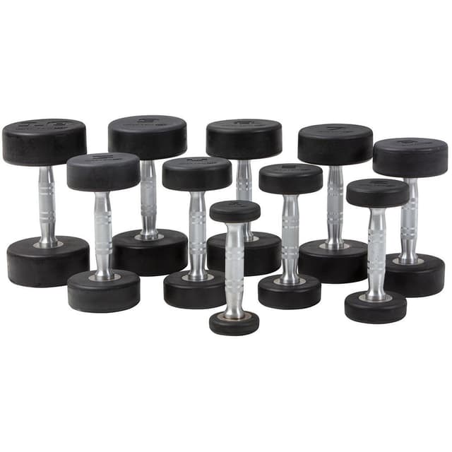 Runde gummihantler som består av 100 % stål. Grep i rustfritt stål. Hantlene har et ergonomisk grep og er tykkeste i midten.