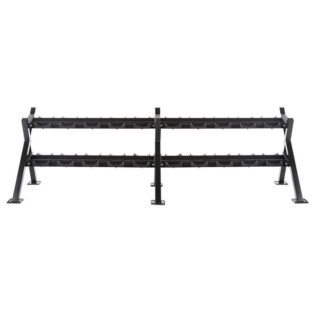 Et veldig solid stativ fra Thor Fitness for miljøer med tøffe bruksområder som kommersielle treningssentre. Håndstativet har to etasjer for 10 par Thor Fitness PU manualer, sammen utstråler disse produktene kvalitet! Vekt: 93 kg Bredde: 273 cm Høyde: 82 cm Lengde: 79 cm