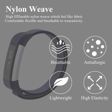 Dette nylonarmbåndet passer Fitbit Alta, Alta HR og Fitbit Ace (for barn). Det er laget av førsteklasses nylonstoff, som gir maksimal komfort og lar huden puste. Den kan vaskes og tørkes raskt. Fitbit-armbåndet er lett og mykt, så klokkeremmen føles behagelig mot huden. Med presis matchende braketter for enkelt og sikkert å bytte armbånd på Fitbit.