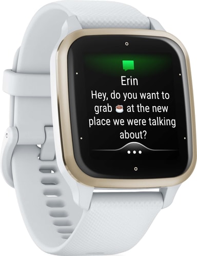 Venu Sq 2 kommuniserer direkte med din smarttelefonen eller nettbrett for å gi deg suverene aktvitetsmålinger. Last opp dataene dine til din smartenhet og se gjennom treningsvanene dine når som helst. Smartklokken varsler deg også når du mottar meldinger på telefonen og viser dem til deg direkte fra håndleddet. Disse funksjonene kan tilpasses og er laget med tanke på brukervennlighet.