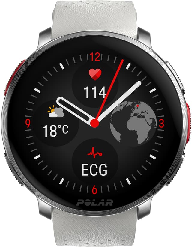 Vantage V3 hjelper deg med å få en sunnere livsstil takket være flere innebygde sensorer. Klokken har en optisk pulsmåler som gir deg detaljerte analyser av hjertets helse. I tillegg kan du følge med på oksygeninnholdet i blodet, søvnregistrering og nattlig hudtemperatur og bruke EKG på håndleddet, noe som gir deg varsler og nyttige tips.