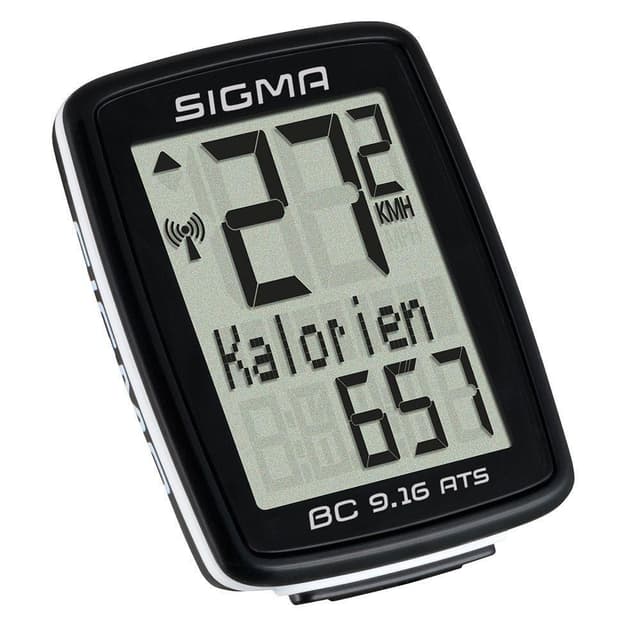 Sigma BC 9.16 er en treningsspesialist med kaloriteller. Sykkelcomputeren viser de viktigste verdiene til en enkel og liten enhet. Til tross for kompakt og liten størrelse er det lett å lese verdiene som er store og klare. I tillegg til syv viktige verdier viser 9.16 også total sykkeltid, gjennomsnittshastighet og kalorier. Sykkelcomputeren er utstyrt med bare en stor knapp som lar deg bytte mellom informasjonsskjermene, raskt og enkelt. BC 9.16 beregner antall forbrente kalorier basert på hastigheten du sykler. Sykkelcomputeren er festet til styret eller styrestammen helt uten verktøy. Lett å bruke 9 verdier 1 stor knapp Tydelig skjerm Vanntett Automatisk start/stopp Viser hvor mange kalorier du har forbrent basert på hastighet Trådløst hastighetsmåler Funksjoner Hastighet Ja Gjennomsnittshastighet Ja Maksimal hastighet Ja Kalorier Ja Totalt antall kalorier Ja Distanse Ja Total distanse Ja Tid Ja Total tid Ja