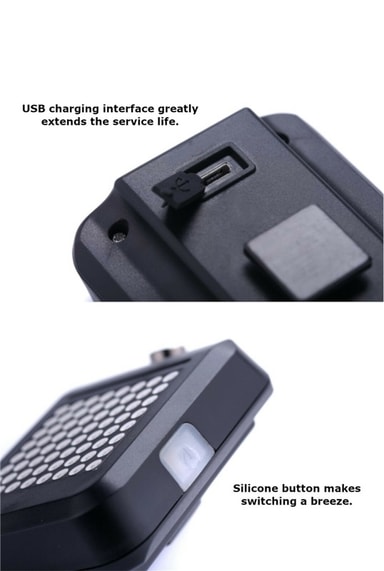 Dette er en smart LED-baklykt som kan brukes på de fleste sykler og terrengsykler, hjelmer og ryggsekker. Hovedlyset er laget av LED og kan oppnå en maksimal lysstyrke på 80 Lumen. Den kan veksle mellom fire forskjellige lysmoduser, og takket være den innebygde sensoren kan den advare kjøretøy bak deg på en intelligent måte. Lasersensoren holder styr på sykkelens hastighet og retningsendringer. Ulike lys tennes avhengig av retning og hastighet