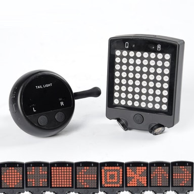 Oppladbart LED sykkel baklys som du kan styre med en fjernkontroll montert på styret. Baklyset har en integrert blinklysfunksjon. Passer til alle typer sykler. Monteringsbraketter følger med.