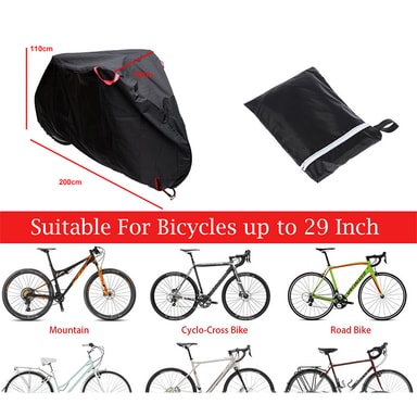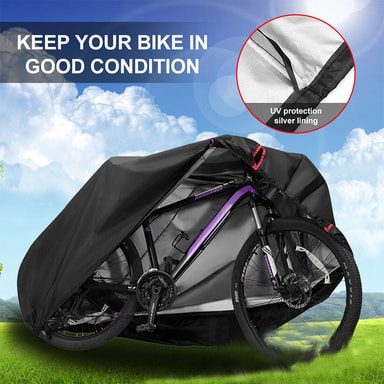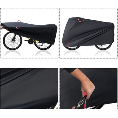 Vanntett og UV-bestandig: Dette sykkeldekselet er designet for å beskytte sykkelen din mot regn, snø og skadelige UV-stråler. 210D Oxford-stoffet er både vann- og UV-bestandig, noe som sikrer at sykkelen din holder seg tørr og at fargen holder seg levende.