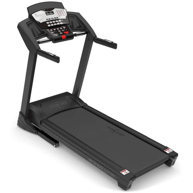 TITAN LIFE T80 Pro er en tredemølle med en veldig sjenerøs løpeflate på 54 cm. Dette gir deg en komfort som minner om tredemøllene du har i treningsstudioet. Til tross for at tredemøllen er sammenleggbar, føles den veldig stabil takket være sin egenvekt på hele 95 kg. TITAN LIFE T80 Pro er utviklet for løpere som krever mye av tredemøllen sin. Tredemøllen er utstyrt med en 4 hk motor som gir en toppfart på 22 km / t. Med sine 20 stigningsnivåer, vil tredemøllen virkelig dekke den mest krevende løperen. LED Displayet viser hastighet, stigning, tid, distanse, kalorier, hjertefrekvens og kroppsfett Maksimal brukervekt 160 kg Støtter ZWIFT Husk at maskinen aldri står helt stille under bruk, noe som betyr at gulvet kan bli skadet selv om treningsapparatet har ""føtter"". Mange svetter og søler vann under treningsøktene, noe som kan skade gulvet hvis det er følsomt for fuktighet. Treningsmaskinen kan være følsom for statisk elektrisitet, som en underlagsmatte beskytter godt mot. Vi anbefaler derfor alle våre kunder å ha en eller annen form for gulvbeskyttelse under maskinen.
