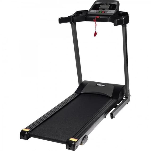 Tredemølle fra Gorilla Sports med tre ulike stigningsnivåer og løpehastighet mellom 1-12km/t. Denne sammenleggbare løpeanden har muligheten til å spille mp3, den har to sensorer som måler pulsen din og er utstyrt med en sikkerhetsnøkkel som raskt kan kutte strømmen om nødvendig. På displayet kan du se tid, hastighet, distanse, antall forbrente kalorier og puls, og om du vil er det tolv programmerte programmer å velge mellom med ulik vanskelighetsgrad. Annen informasjon LCD-skjerm: 5 tommer med blått bakgrunnsbelysning MP3-tilkobling Emballasjemål (LxBxH): 158x74x26,5 cm