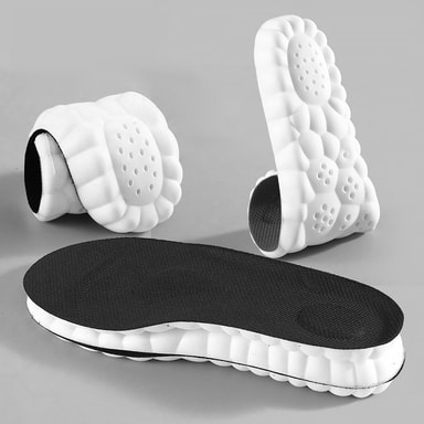 Pustende og komfortable: Disse 4D-innleggssålene er designet med en pustende nettingoverflate som gir utmerket luftsirkulasjon og holder føttene kjølige selv under intense aktiviteter. PU-minneskummet gir eksepsjonell demping og tilpasser seg føttenes form for en tilpasset passform.