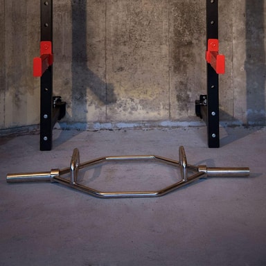 Denne stangen lar deg sentrere vekten i center av kroppen. I tillegg til to forskjellige grepshøyder lar HexBar deg derfor løfte mer skånsomt enn med en standard vektstang.Les mer om produktet