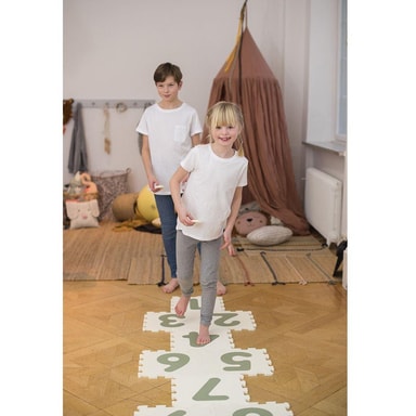 Abilica HopScotch er matten som raskt skjerper konsentrasjonen din og får kroppen din i bevegelse. Pusle sammen de 10 sifrene for å hoppe paradis eller finn på et annet mønster. Hver enkelt rute er 32 x 32 x 1 cm. Totalt 10 ruter og 4 kastebrikker.
