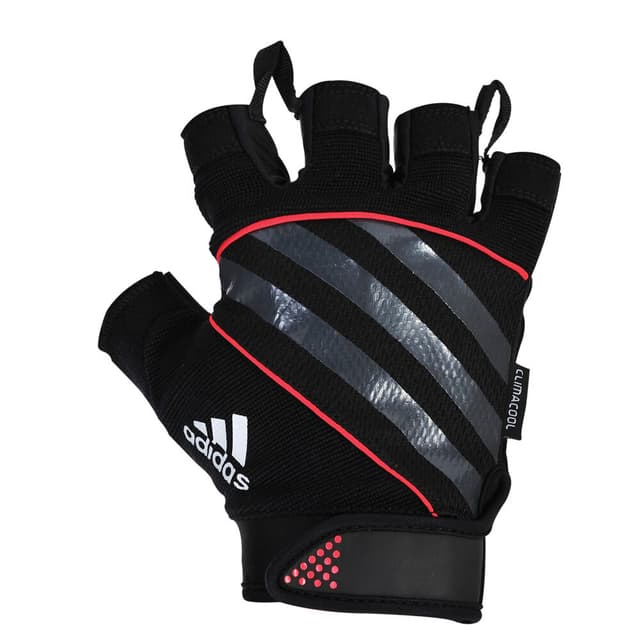 Adidas korte føderte ytelse hansker - trening ""hands-on""! Fingerhansker er et populært valg blant styrketreningsentusiaster, da de gir en bedre følelse av stangen. Fingertuppene er gratis og forhindrer opphopning av svette.Les mer om produktet