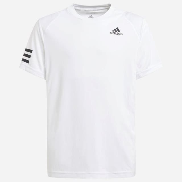 Klubbstil med en modern twist. Den här kortärmade adidas Club-tenniströjan för ungdomar har horisontella 3-Stripes på ena ärmen och är gjord för komfort. Meshpaneler, ventilerande tyg och fuktabsorberande AEROREADY ger dig en sval och torr känsla genom de mest intensiva bollduellerna. En kil under ärmarna ger dig den frihet du behöver för att sätta varje slag.Den här produkten är gjord med Primegreen, en serie med mycket funktionella, återvunna material. Normal passform Rund hals Interlock i 100 % återvunnen polyester Fuktabsorberande Paneler på axlar och sidor Full rörelsefrihet för tennisspel Primegreen