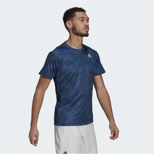 EN T-SHIRT I ÅTERVUNNET MATERIAL. Spela för planeten i den här kortärmade tröjan från adidas. Den ingår i en kollektion som bärs på planen i den främsta turneringen söder om ekvatorn. Freelift-konstruktionen ger full rörelsefrihet för armarna, så att du kan serva och smasha utan att tröjan glider upp. Det snygga trycket drar blickarna till sig minst lika mycket som ditt bländade tennisspel. Produkten är gjord i Primeblue, ett återvunnet funktionsmaterial delvis skapat med Parley Ocean Plastic.