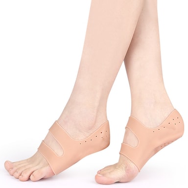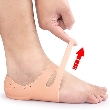 Myk og behagelig: Laget av høykvalitets SEBS-materiale gir disse hælputene eksepsjonell demping og støtte til føttene dine. Det myke og fleksible materialet tilpasser seg formen på foten din, og sikrer en behagelig passform hele dagen.