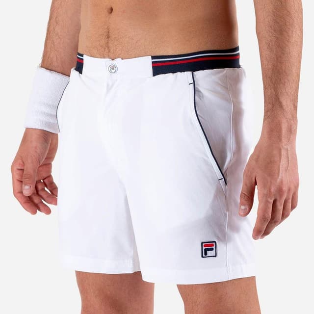 Vita tennisshorts från FILAs klassiska heritagekollektion! Shortsen genererar en cool retrokänsla med knäppning samt en kombination av Filas klassiska nyanser av röda och blå färgdetaljer vid midjan.Les mer om produktet