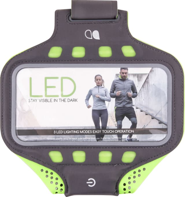 GEAR sportsarmbånd LED XL er laget av neopren og PVC-materialer for lang holdbarhet. Armbåndet har 8 LED-lys som kan brukes i tre forskjellige hastigheter. Velg mellom av/på-funksjon, fast lys, og hurtig eller sakte blinking. GEAR sportsarmbånd LED XL er praktisk og ideelt for utendørs sport, og drives av 2 x CR2025 knappcellebatterier som kan byttes. Armbåndet passer til iPhone 6 og andre smarttelefoner av samme størrelse.