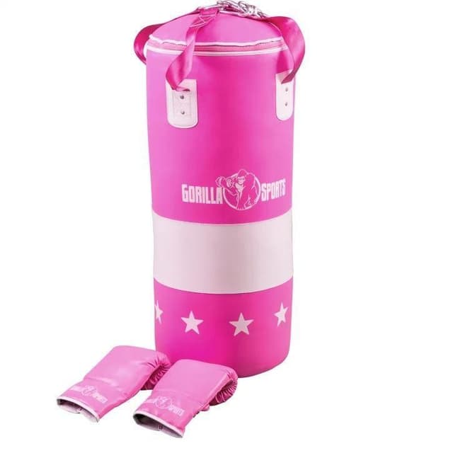 Enten det er for stressmestring, selvforsvar eller slåsskamp, er boksing ideell for å komme i form. Dette er en pakke med en 70 cm boksesekk som veier 16 kg og et par boksehansker, alt i rosa. Annen informasjon Et par boksehansker i rosa følger med Fire karabinkroker følger med