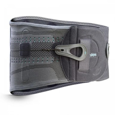 Korsryggstøtte fra Aspen lindrer smerter i korsryggen forårsaket av for eksempel stress og muskeltretthet. Denne forsterkede ortosen er et rimelig hverdagshjelpemiddel og har Aspens patenterte 4:1 kompresjonssystem for forbedret støtte.
