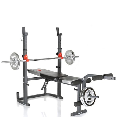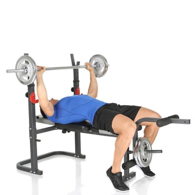 BERMUDA XT universell treningsbenk fra Hammer passer i alle rom og er perfekt for styrketrening hjemme. Hvis du vil trene bryst, armer, ben eller rygg, gir den kraftige treningsbenken fra Hammer deg nesten like mange muligheter som i treningsstudioet. Det justerbare ryggstøtten for flat og skrå benkpress gjør treningsbenken enda bedre. I tillegg er treningsbenken støttet av en robust rørrørstålramme med vektstang som kan justeres i flere stillinger. Perfekt for styrketrening og kroppsbygging Treningstyper: Benkpress, skrå benkpress, skulderpress, benkrøll, lårkrøll, sommerfugl etc. Flere justerbare vektstengerposisjoner mellom 96 - 120 cm Ryggstøtte med 45 mm komfortpute kan justeres i 4 posisjoner Maksimal lastvektstativ: 100 kg Vær oppmerksom på at vektstenger og vektplater ikke er inkludert. Solgt separat.