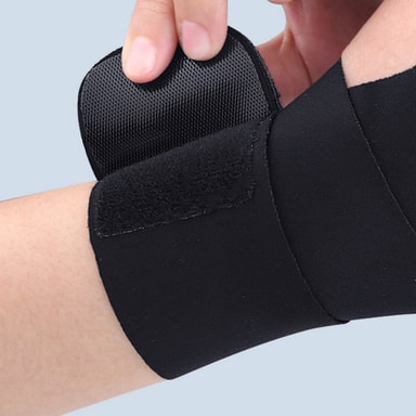 Justerbar og elastisk tommelstøtte laget av mykt og pustende materiale. Støttebandasjen lukkes fleksibelt med borrelås. Håndledds- og tommelbeskyttelsen gir avlastning og støtte ved overbelastning, smerter og slitte ledd og varmer opp tommelleddet.