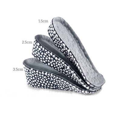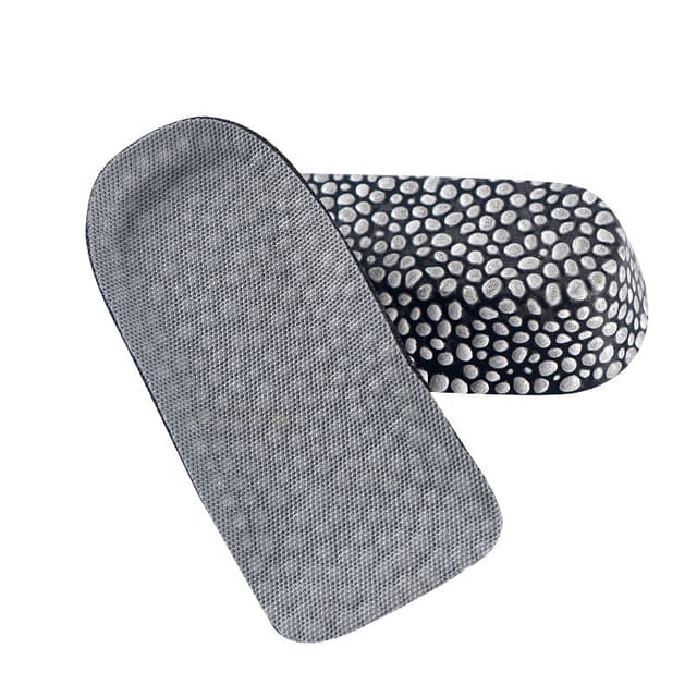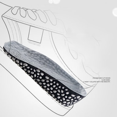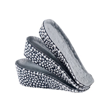 Popcornpartikler gir en myk og støttende følelse under føttene, noe som reduserer tretthet og øker komforten under lange perioder med stående eller gange. Nettingmaterialet fremmer luftsirkulasjon, forhindrer lukt og holder føttene friske. Disse innleggssålene er ideelle for både menn og kvinner som leter etter en diskré og komfortabel løsning for å øke høyden.