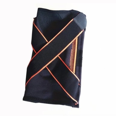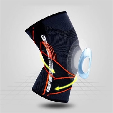 Robust knebeskyttelse laget av en blanding av nylon, bomull og silikon for beste komfort. Knebeskyttelsen kan justeres for å passe til kneet. Beskyttelsen er elastisk, ventilert og svetteabsorberende, så den passer både til hverdags og lettere trening. Knebeskyttelsen hjelper mot smerter i kneet, men reduserer også restitusjonstiden etter trening. Størrelse: M