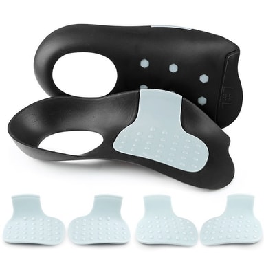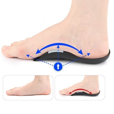Justerbar fotbuestøtte: Opplev personlig komfort med disse justerbare ortopediske innleggssålene. Skreddersy fotbuestøtten til dine spesifikke behov, og gi lindring fra fotsmerter og ubehag forbundet med flate føtter. Den justerbare designen lar deg gradvis øke støtten, fremme riktig justering og redusere belastningen på føtter, ankler, knær og rygg. Ideell for personer som søker en ikke-invasiv løsning for flate føtter, nedsunkne fotbuer og overpronasjon. Disse innleggssålene er perfekte for hverdagsbruk, atletiske aktiviteter og langvarig stående.