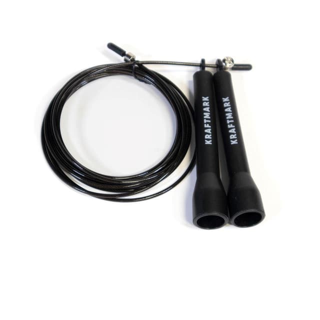 Kraftmarks speed rope er et enkelt svart hoppetau med gummiert vaier. Kullageret gir hoppetauet en god rotasjon for doble hopp. De ekstra lange håndtakene gjør det enkelt å ta tak i. Selges separat Vaier 2 mm