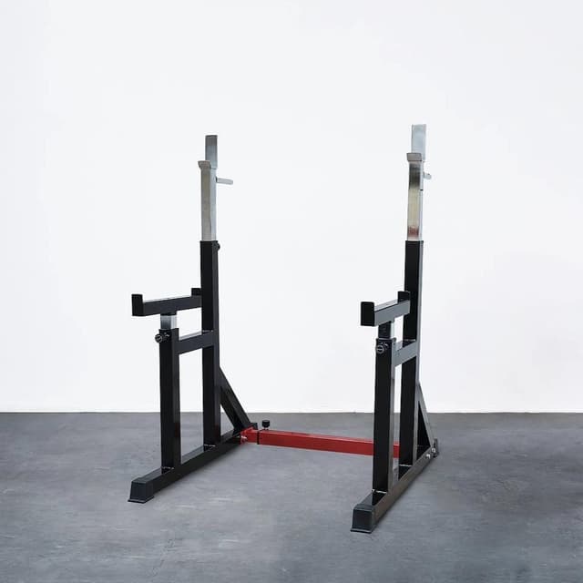 Justerbar squat stand. Dybde 107 cm (Min) Bredde 90 cm (Max) Bredde 146 cm (Min) Høyde 122 cm (Max) Høyde 172 cm (Min) Høyde Hooks 103,5 cm (Max) Høyde Hooks 149 cm Safety bars Max høyde 102 cm Min høyde 72 cm Dybde 43,5cm