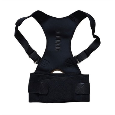 Ryggstøtten har strategisk plasserte magneter som kan lindre ryggsmerter og er framstilt av et bekvemt stretchmateriale så det skal kunne brukes overalt.