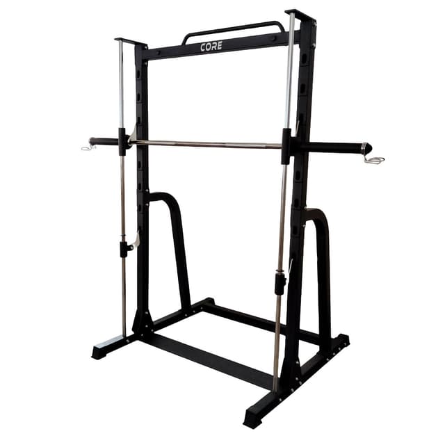 Mangfoldigheten til Core Smith Half Rack gjør det til et flott kjøp for hjemmegymmet. Den kombinerer et squat rack og en Smith-maskin. Den robuste og sterke strukturen gjør at du kan trene hardere og enda mer utfordrende øvelser på en sikker og trygg måte. Stativet har også en chin-up bar.