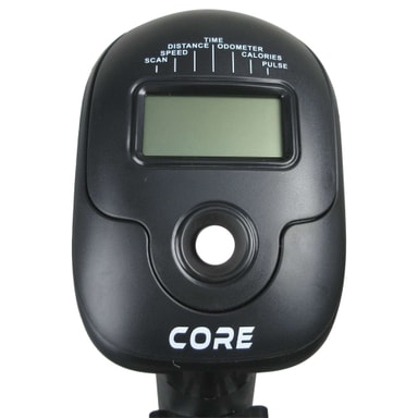 Core Exercise Bike 400 har et motstandshjul på fire kilo, åtte motstandsnivåer, en enkelt justerbar benk og en skjerm som viser tråkketid, hastighet, distanse, kalorier, ODO og puls.