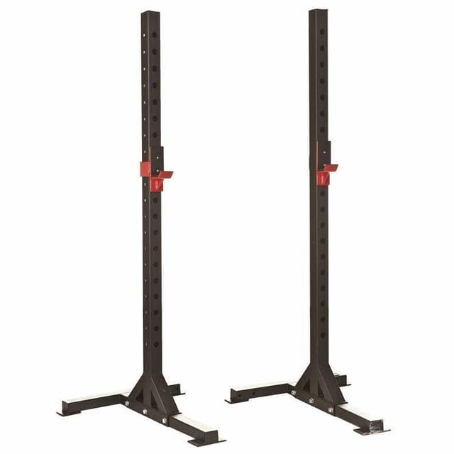 Kraftig knebøy stativ type 2 holder meget høy kvalitet og stabilitet. T-formet base som gir god plass til knebøy og benkpress. Perfekt for hjemmet eller treningsstudioet som har begrenset plass, men som ønsker topp kvalitet.