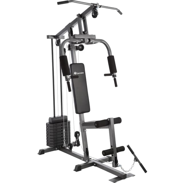 Det er hardt arbeid å komme i form. Men styrketreningsapparatet fra Tectake sørger for at du har det gøy når du trener. De mange forskjellige skyv- og trekkøvelsene og de justerbare vektene egner seg utmerket for å trene rumpe, armer og ben. Den massive konstruksjonen med den solide rørrammen og plastbelagte ståltau garanterer maksimal sikkerhet og stabilitet under alle øvelser, og den er skånsom mot leddene når du står så vel som behagelig å sitte på. Med de mange forskjellige treningsmulighetene egner denne multistasjonen seg for trening av hele kroppen, og den beskjedne størrelsen gjør at den også er ideell for mindre leiligheter eller kjellerrom.