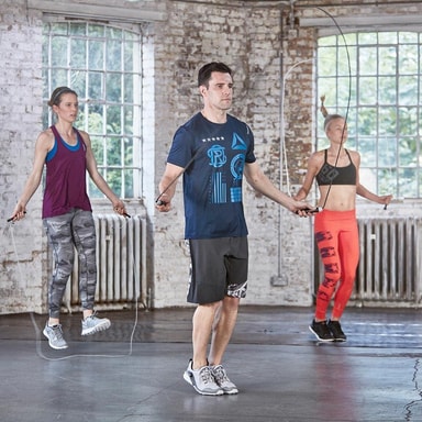 Reebok Leather Jump Rope er litt tyngre, er mer robust med et tykkere bånd og har en ekstra vekt på 100 gram i hvert håndtak. Dette hoppetauet er ideelt til å forbedre styrken i overkroppen, samt for å vedlikeholde cardiotrening.