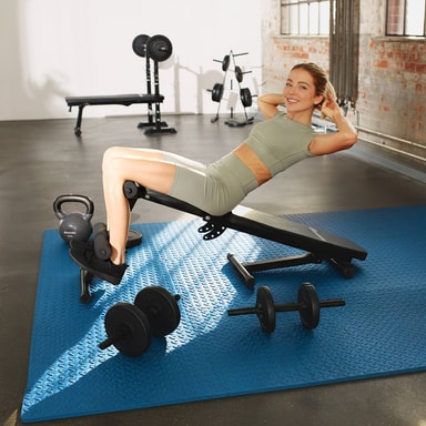 Den slitebestandige og universelt anvendbare 12-delte gulvmatten kan takket være sine funksjoner brukes som beskyttelse på mange områder. Ved trening kan den brukes som gulvbeskyttelse eller gymnastikkmatte. Til og med i husholdningen gir den effektiv lyddemping for vaskemaskiner. Den beskytter gulvet ditt når du behøver det. Gjennom at de enkelte platene haker i hverandre kan de legge ut i rakettfart og øke etter behov. Praktisk: Den 12-delte gulvmatten er svært lettstelt, ettersom den enkelt kan tørkes av med en fuktig klut. Klikk hjem denne universalmatten!